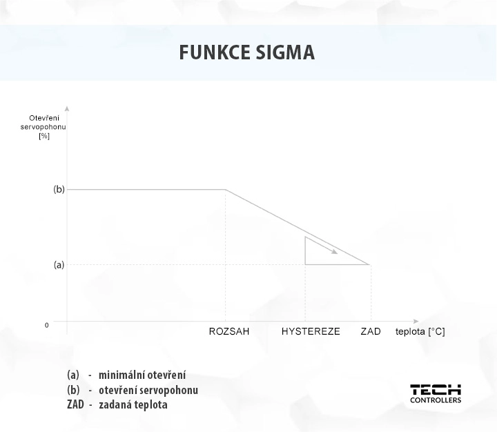 Činnost servopohonů lze naprogramovat v menu obou centrálních jednotek. Aktivace funkce SIGMA umožňuje plynulé ovládání ventilu radiátoru. Uživatel si může nastavit minimální a maximální zavření ventilu – to znamená, že stupeň otevření a zavření ventilu nikdy nepřekročí dané hodnoty. Kromě toho může uživatel nastavit rozsah, který určuje, při jaké pokojové teplotě se ventil začne zavírat a otevírat.