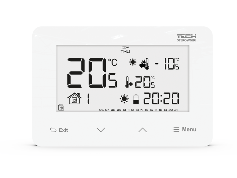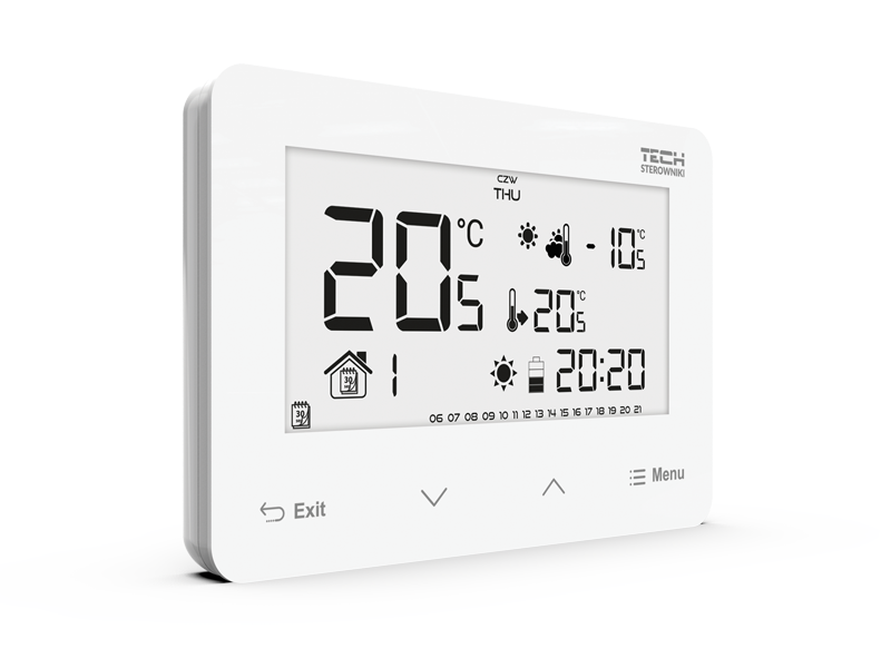 Termostat může řídit jak topný systém, tak chladicí systém. Změnu provozní režim termostatu z topení na chlazení nebo opačně jednoduše provedemu v menu termostatu.