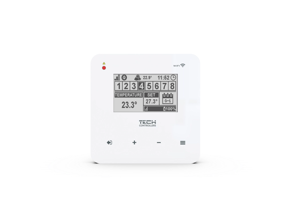 Beznapěťový výstup (NO/NC/COM) ovládá zdroj tepla na základě požadavků o potřebě topení ve vybraných zónách.