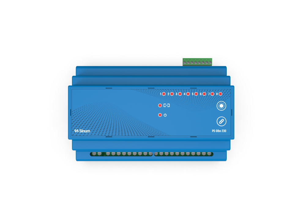 PS-08m 230 je zařízení určené k ovládání podlahového vytápění - osmi termoelektrických pohonů. Může také zapínat další zařízení napájená 230 V. PS-08m 230 má 8 reléových napěťových výstupů a montuje se na DIN lištu. K výstupům se připojují pohony nebo jiná zařízení. V kombinaci s ústřednou EH-01 dokáže vytvořit inteligentní systém vytápění domácnosti.
