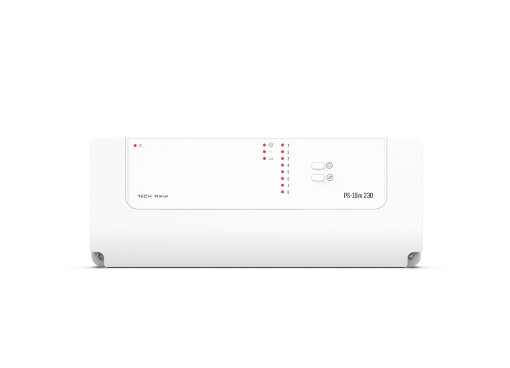 Regulátor termoeletrických ventilu pro podlahové vytápění pro systém Sinum. Kombinuje jednoduchost a bezpečnost připojení s neomezenými možnostmi systému. Má 8 napěťových výstupů pro napájení až 50 termoeletrických pohonů, 1 vyhrazený napěťový výstup pro ovládání čerpadla a 1 beznapěťový kontakt. Regulace je navíc vybavena 2x 2stavovými vstupy.