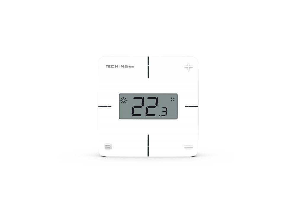 Drátový termostat R-S1 je vybaven čitelným displejem a mechanickými tlačítky. Navíc má čidlo vlhkosti vzduchu.