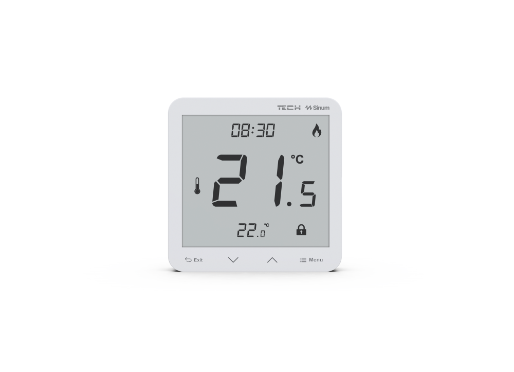 Drátový termostat R-S3 je vybaven čitelným displejem, dotykovými tlačítky a skleněným čelním panelem. Dočasné podsvícení displeje umožňuje vidět nejdůležitější informace i v noci. Navíc má čidlo vlhkosti vzduchu a umožňuje řídit teplotu podlahy díky možnosti připojení drátového podlahového čidla NTC (není součástí dodávky).