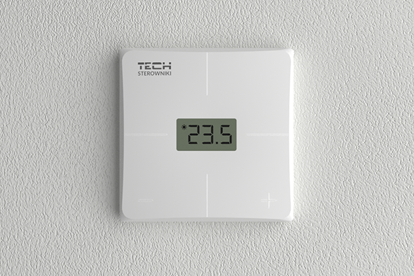 Termostat je vybavený čidlem teploty vzduchu. Intuitivní displej poskytuje informace o aktuální teplotě. Máme možnost změnit požadovanou pokojovou teplotu pomocí dotykových tlačítek. LCD displej bez podsvícení. Podomítková montáž.